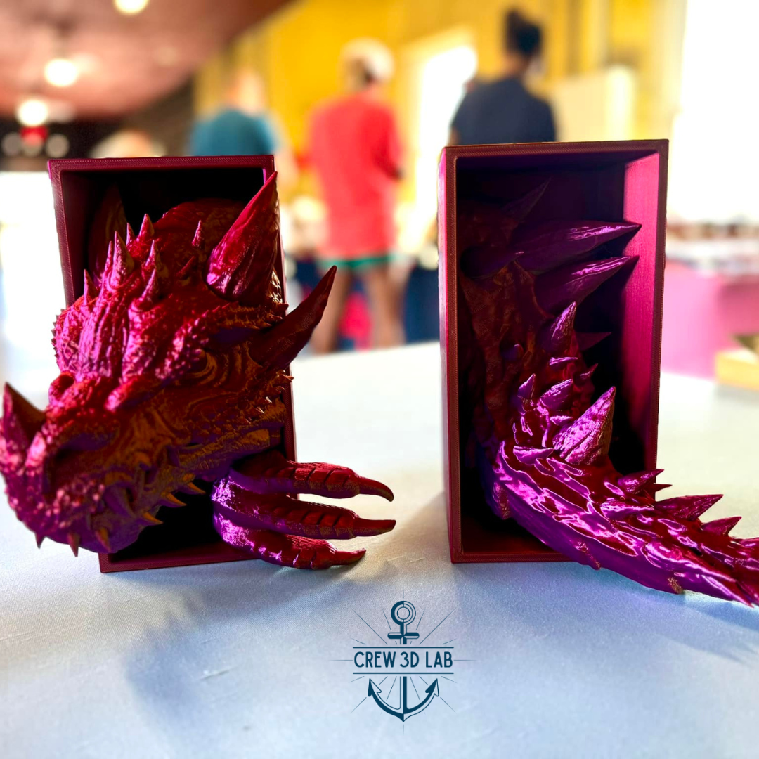Complete your enchanted bookshelf with our Dragon Head & Tail Bookend Set from Crew 3D Lab. This set includes two bookends: one featuring a dragon head emerging from the pages and the other showcasing its powerful tail, creating the illusion of a dragon wrapping around your favorite books. Each piece stands approximately 7.8" high and is meticulously crafted to bring a sense of adventure and magic to your space.