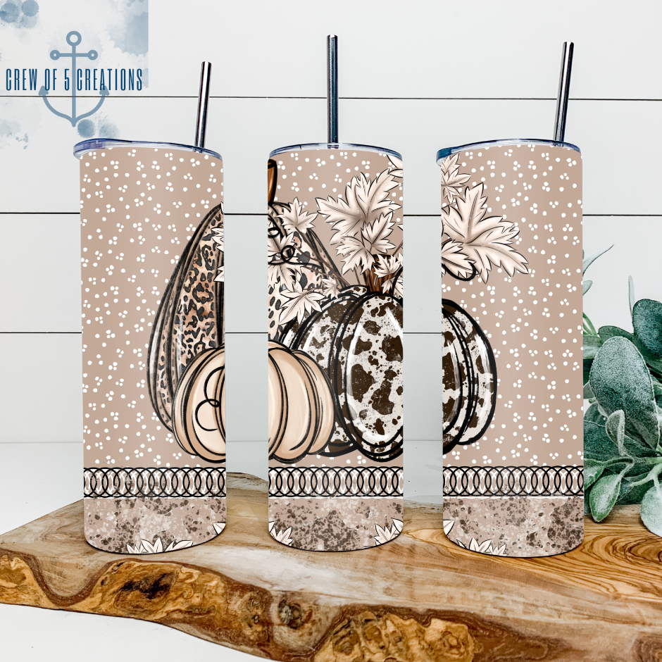 Fall Pumpkin Floral Leopard 20 oz Tumbler