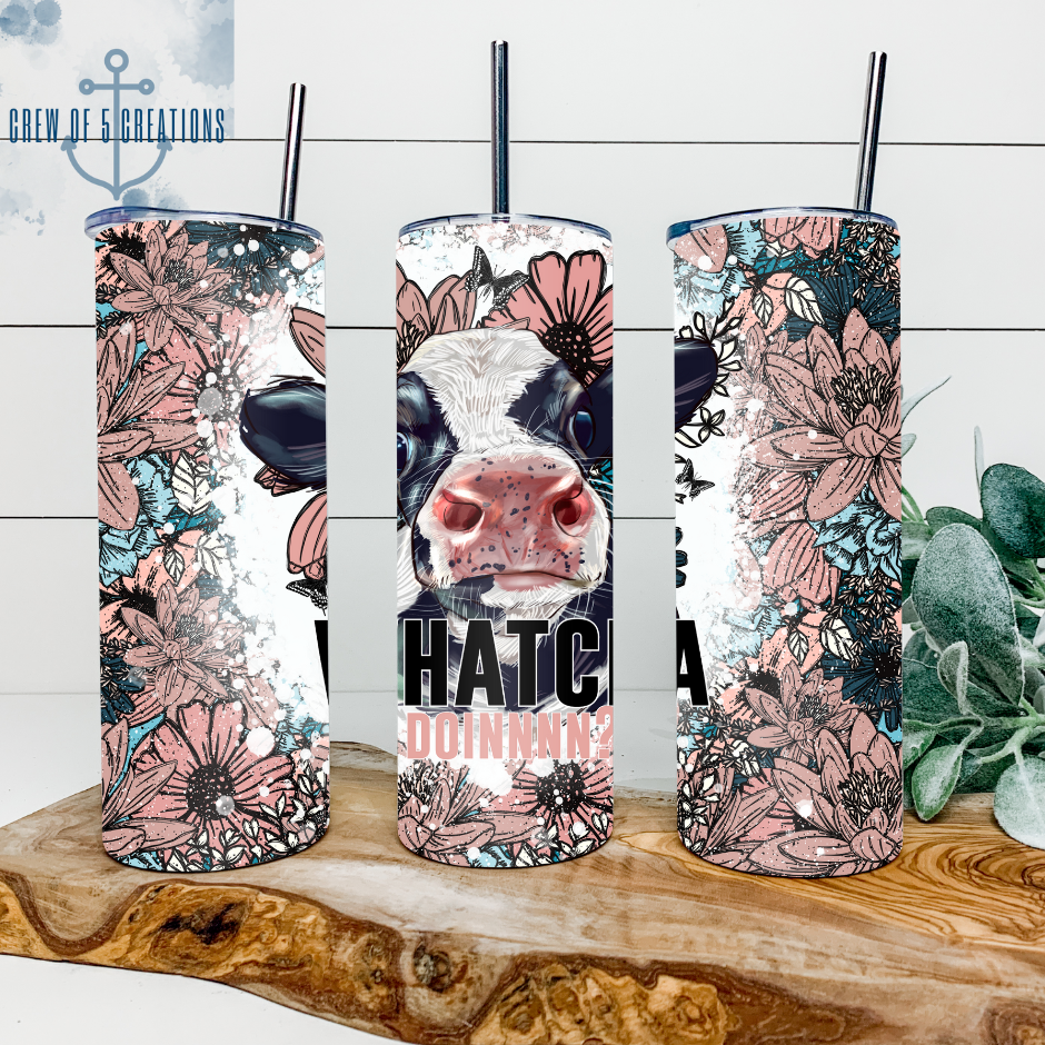 Floral Whatcha Doin? Cow 20 oz Tumbler