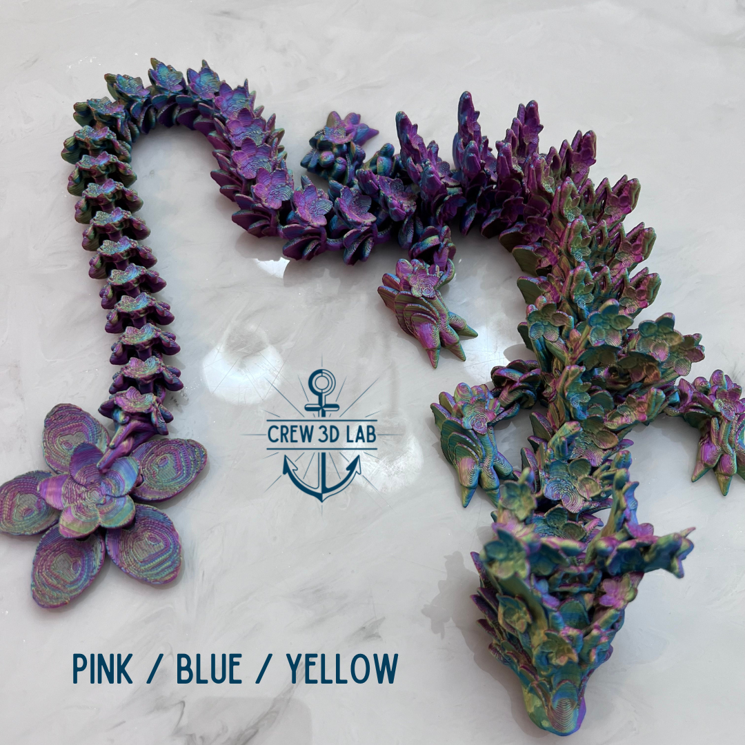 Step into the serene gardens of Crew 3D Lab, where the Guardian Blossom Dragon flourishes as a symbol of renewal and grace. At approximately 20.5" long, this dragon is a celebration of nature’s beauty, with scales that capture the soft hues of cherry blossoms in full bloom. Choose your color, and don’t forget to name her—each Guardian Dragon is unique, just like the fleeting beauty she embodies.