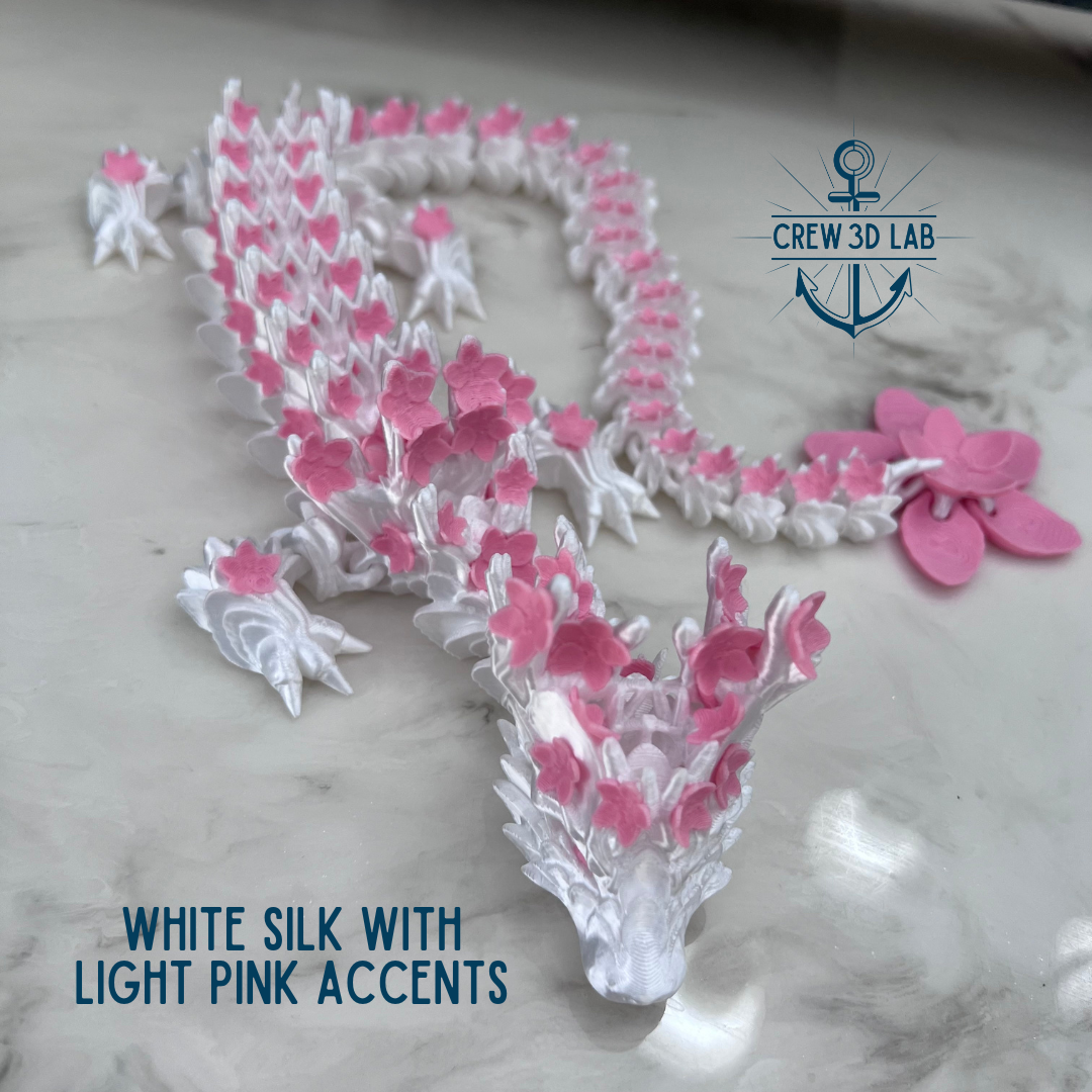 Embrace the delicate beauty of the Guardian Blossom Dragon from Crew 3D Lab! Inspired by the enchanting cherry blossoms, this two-tone dragon, approximately 22" long, captures the essence of nature's fleeting beauty and timeless grace. Adorned with intricate details that reflect the soft petals and vibrant blooms, the Guardian Blossom Dragon is a symbol of renewal and tranquility.