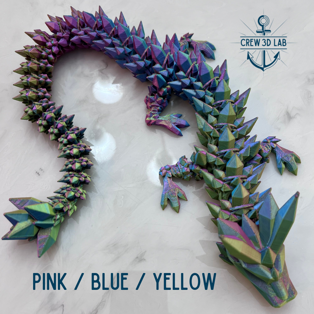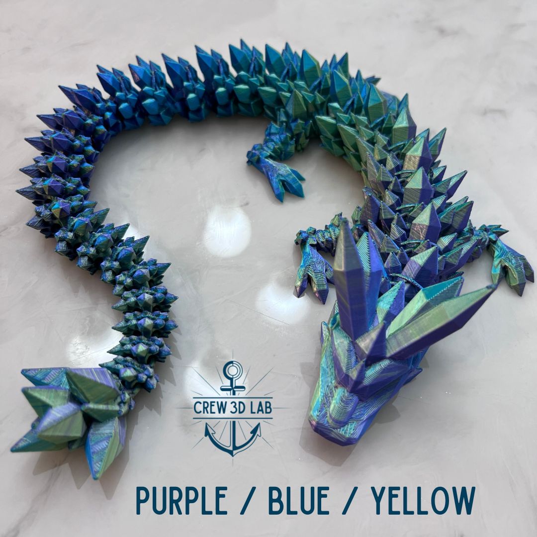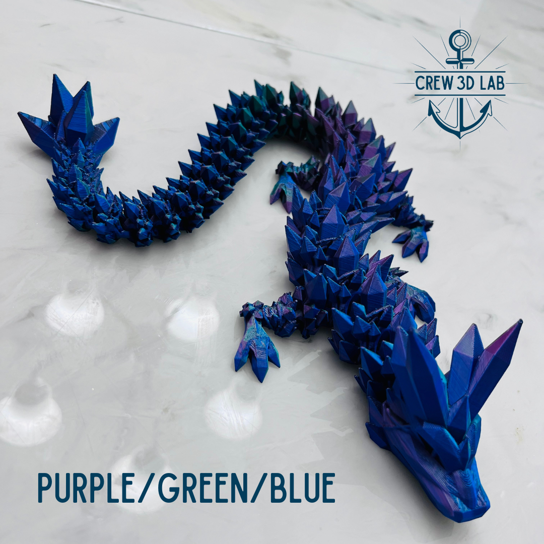 Step into the realm of Crew 3D Lab and meet the Guardian Crystal Dragon, a majestic creature of immense power and ancient wisdom. At approximately 21" long, this dragon is a masterpiece of creation, with scales that shimmer like the fabric of the universe. Choose your color, and don't forget to name him—each Guardian Dragon is unique, just like the lands they protect.