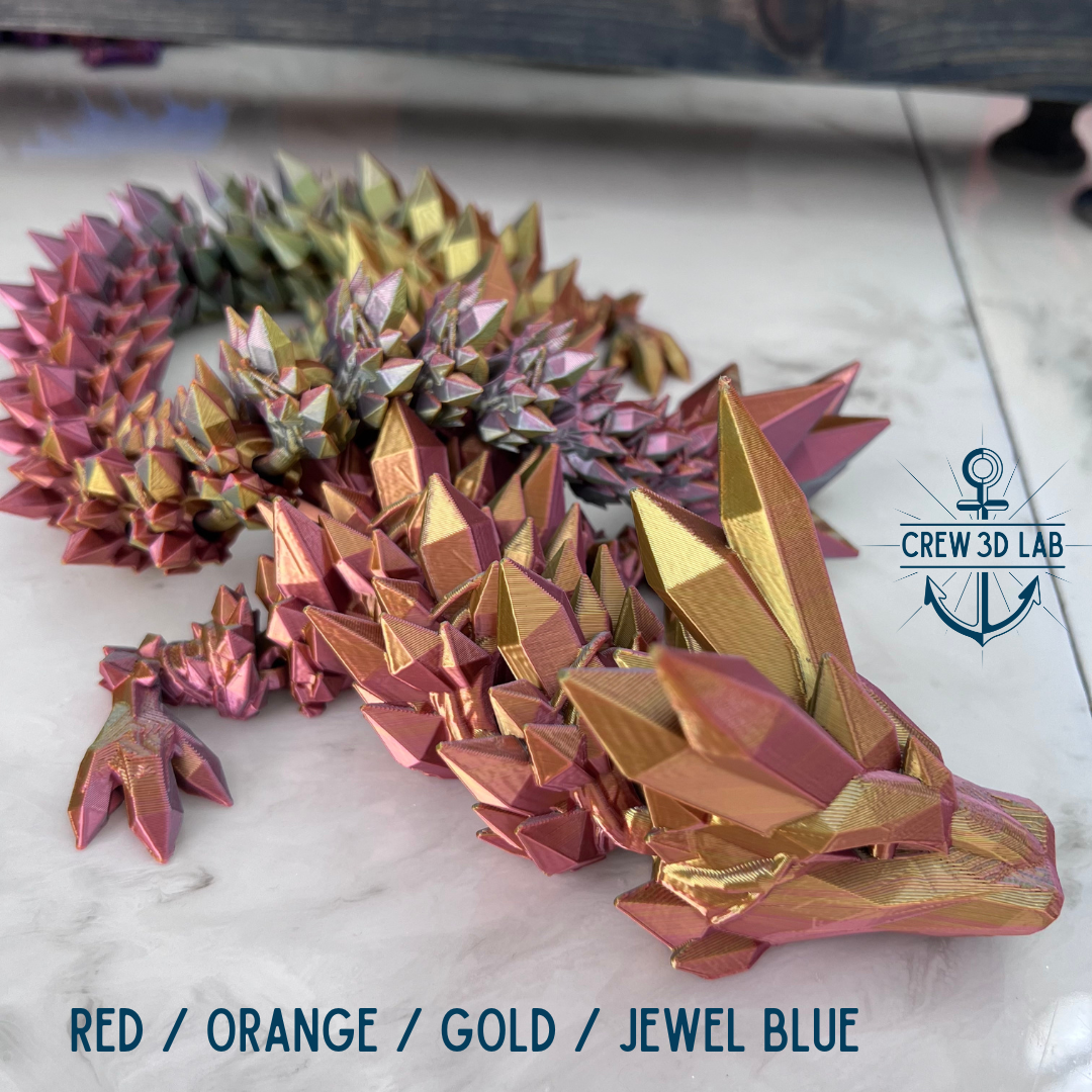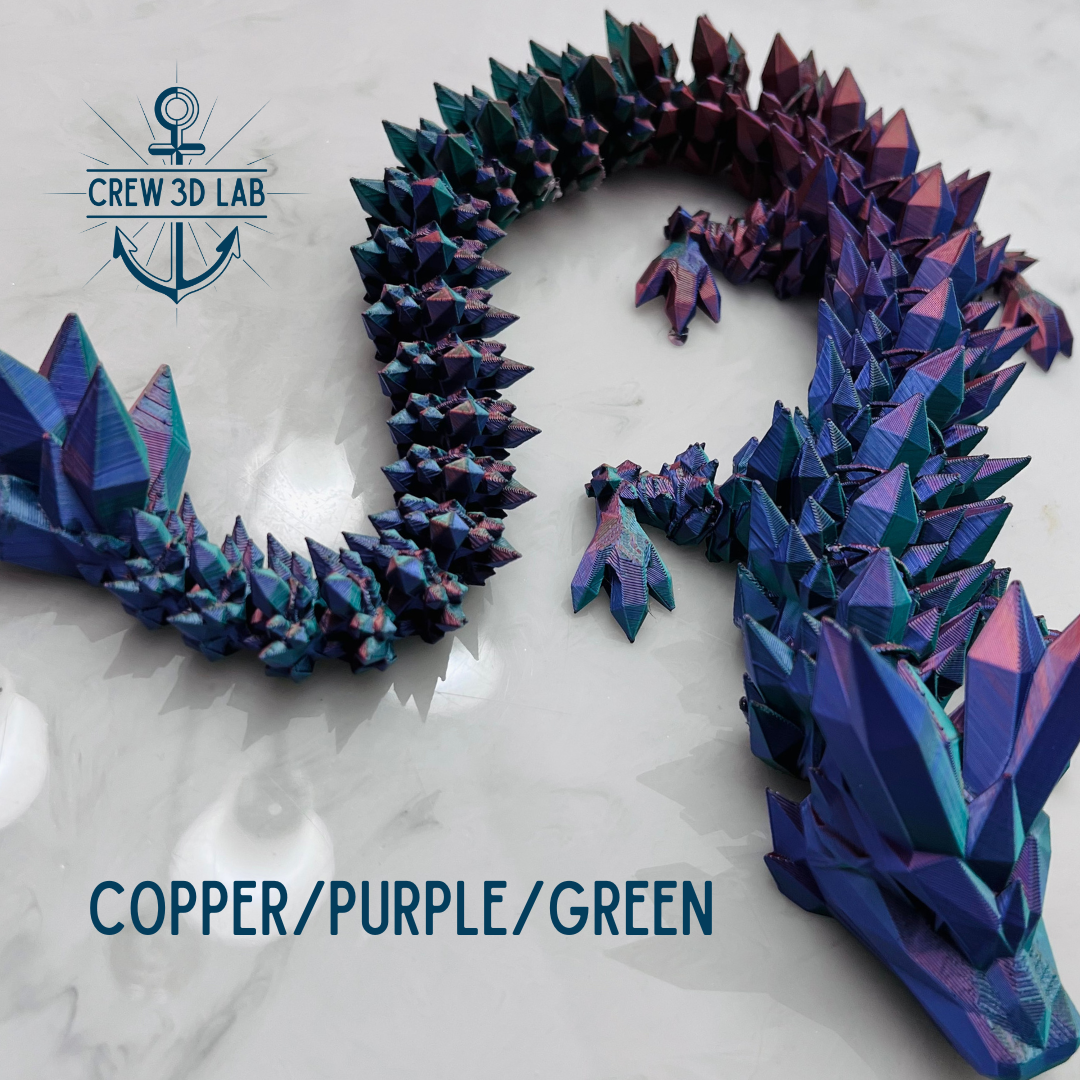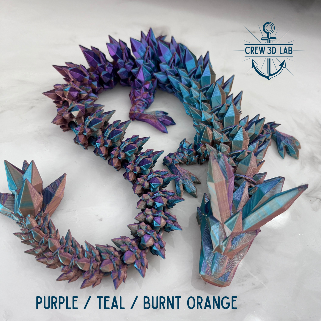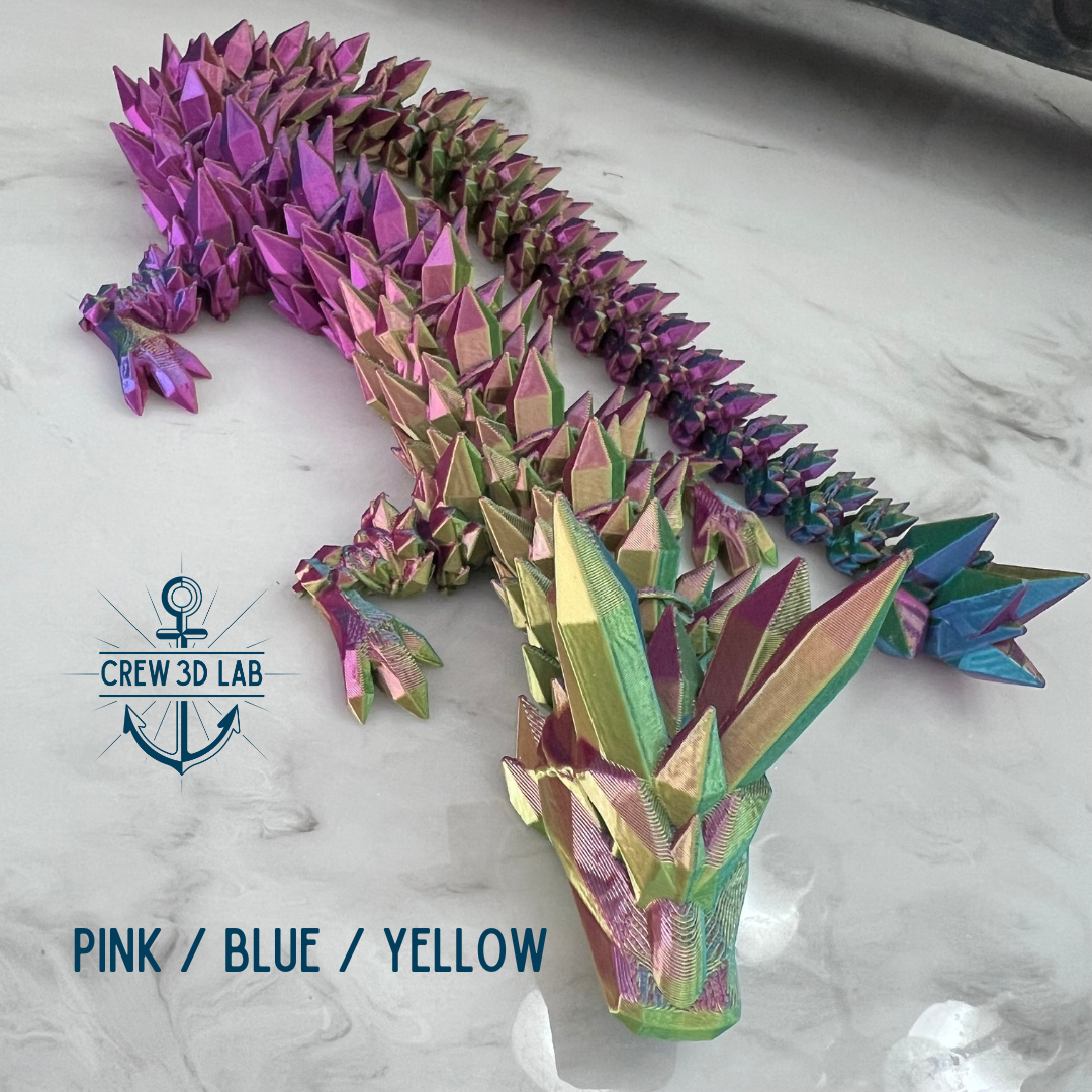 Step into the realm of Crew 3D Lab and meet the Guardian Crystal Dragon, a majestic creature of immense power and ancient wisdom. At approximately 21" long, this dragon is a masterpiece of creation, with scales that shimmer like the fabric of the universe. Choose your color, and don't forget to name him—each Guardian Dragon is unique, just like the lands they protect.