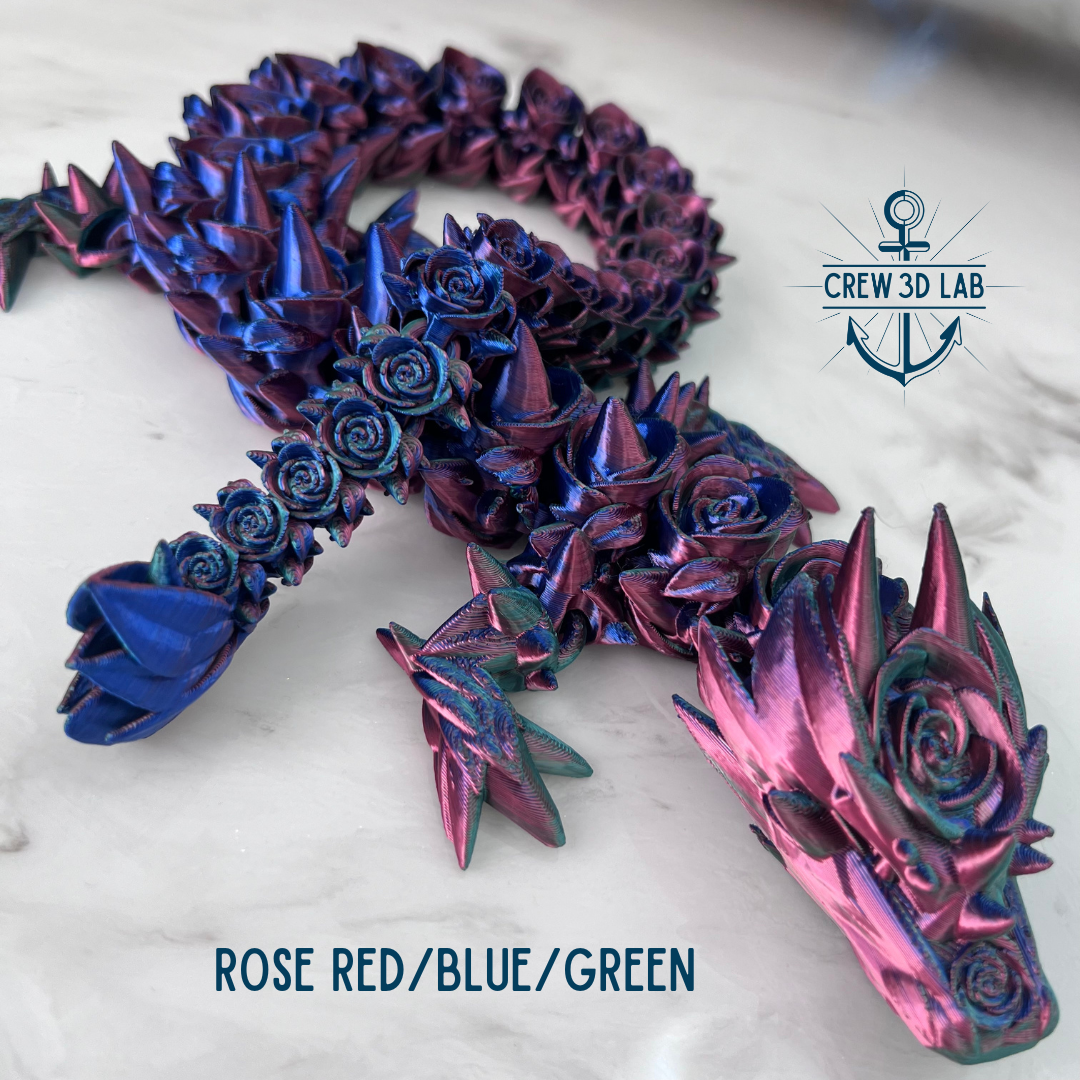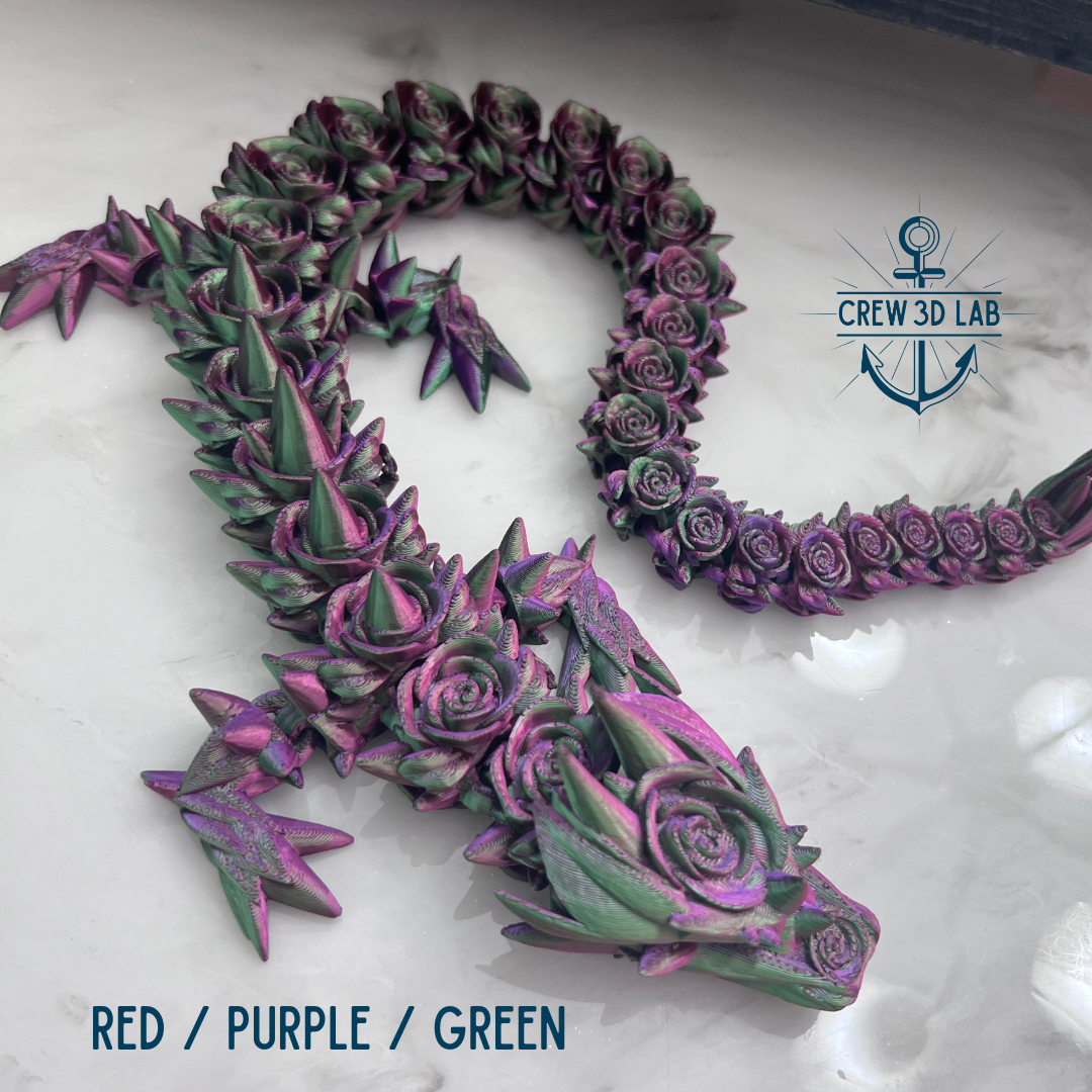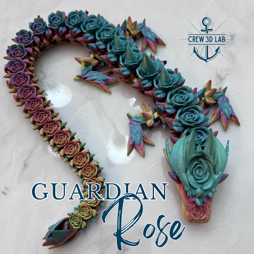 Welcome to Crew 3D Lab, where the Guardian Rose Dragon blooms with the magic of the enchanted garden. At approximately 20.5" long, this majestic dragon is a symbol of beauty and strength, with petals that shimmer in the light like the first blush of dawn. Choose your color, and don’t forget to name her—each Guardian Dragon is unique, just like the magical realm she protects.