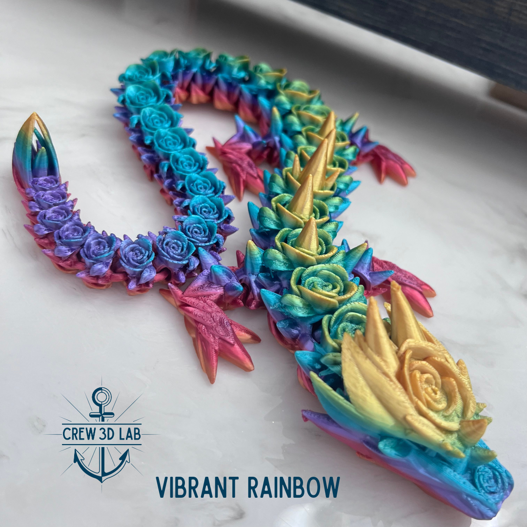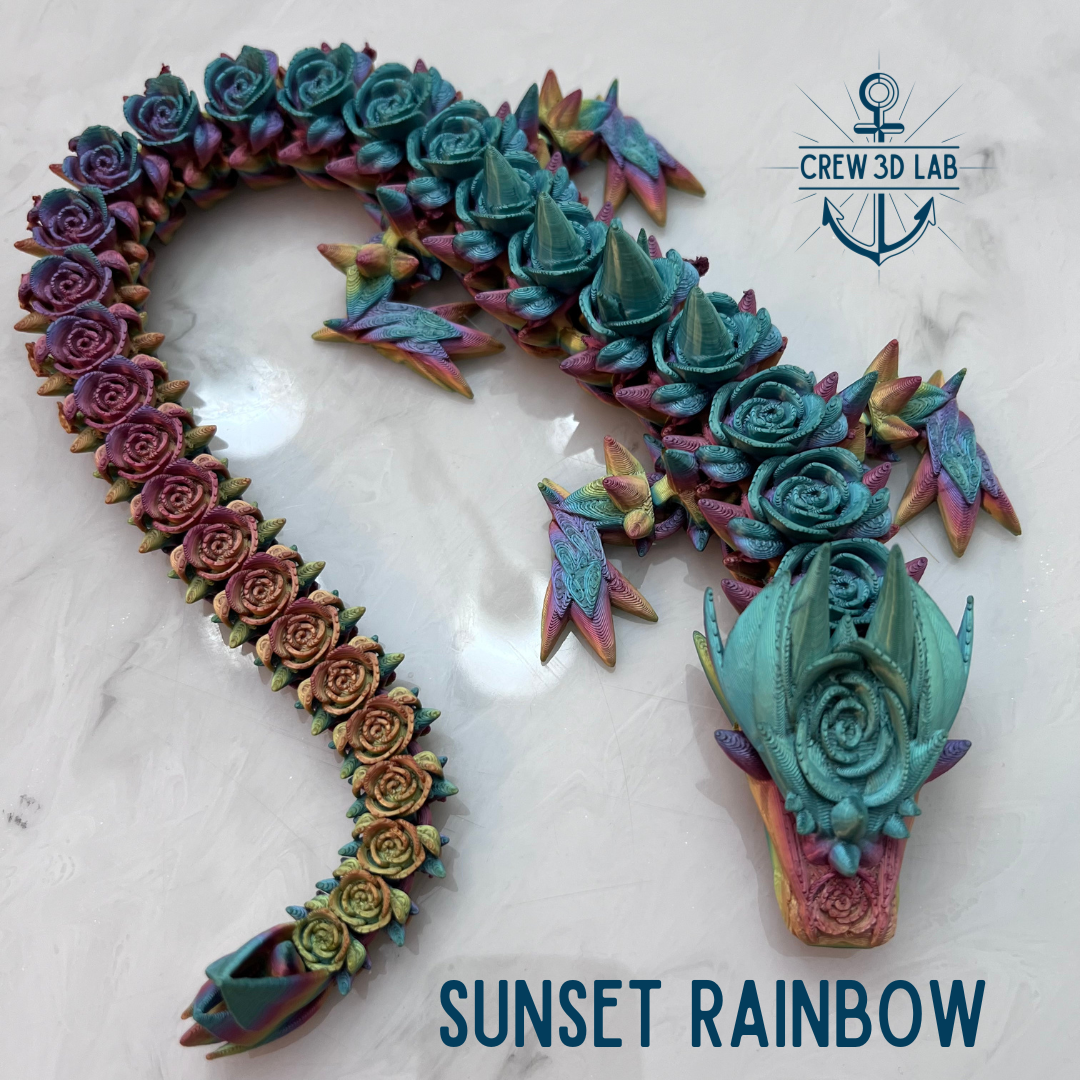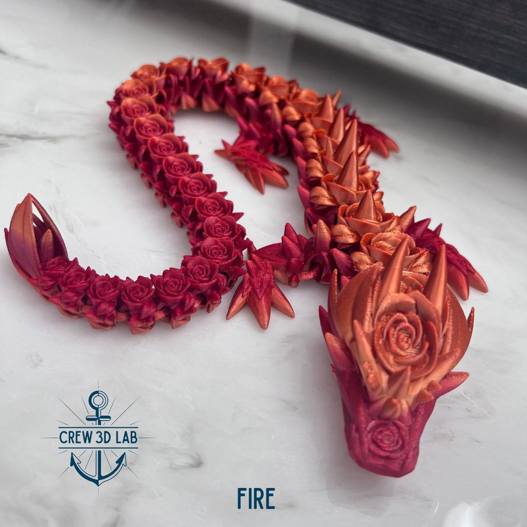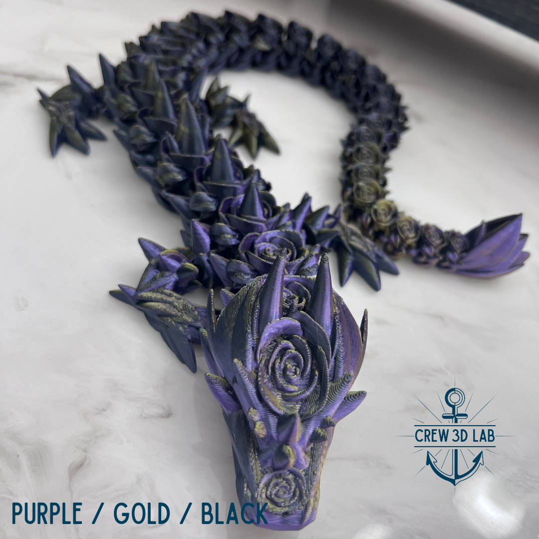 Welcome to Crew 3D Lab, where the Guardian Rose Dragon blooms with the magic of the enchanted garden. At approximately 20.5" long, this majestic dragon is a symbol of beauty and strength, with petals that shimmer in the light like the first blush of dawn. Choose your color, and don’t forget to name her—each Guardian Dragon is unique, just like the magical realm she protects.
