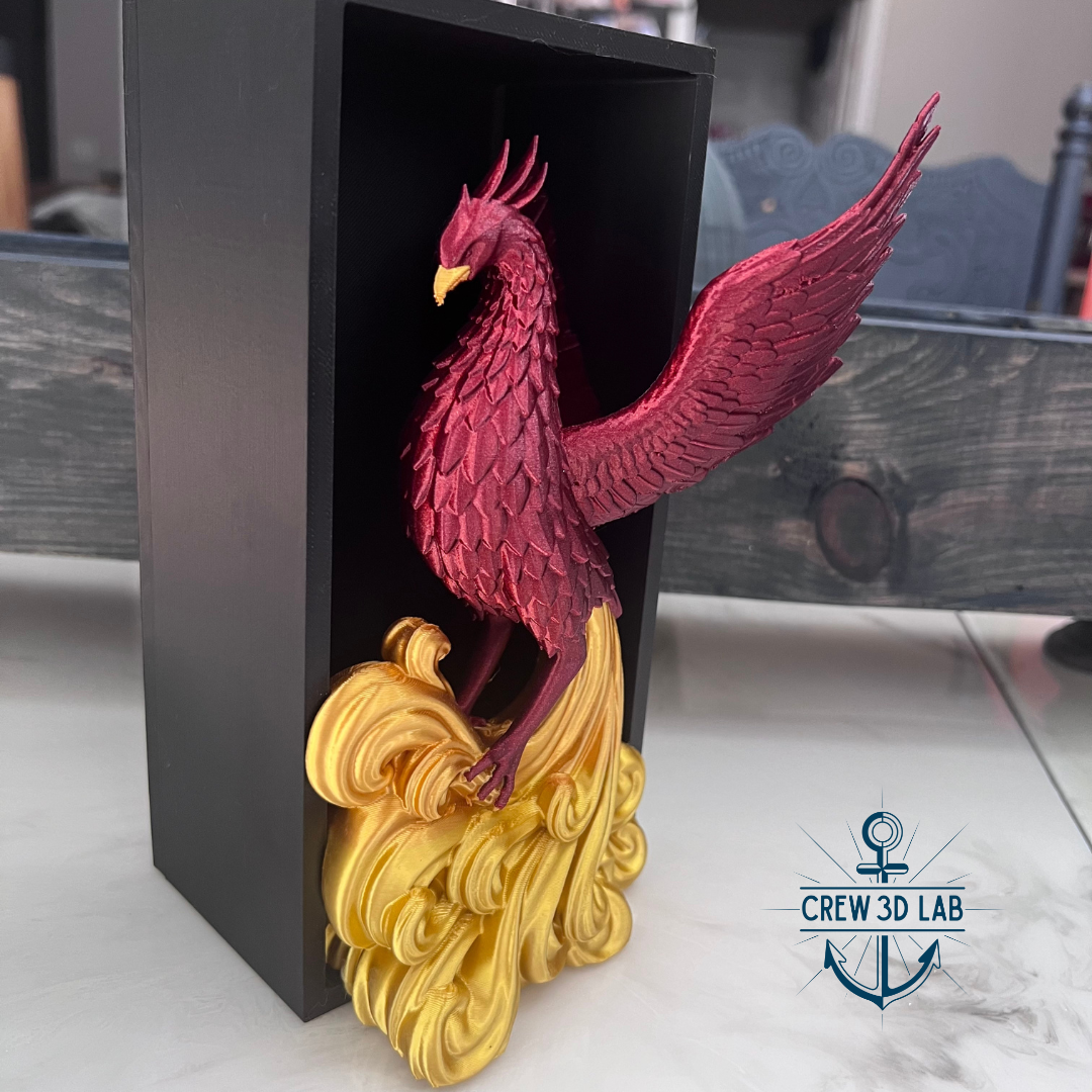 Step into a world of magic with our Phoenix Book Nook from Crew 3D Lab. This enchanting piece captures the awe-inspiring beauty of the mythical phoenix, a symbol of rebirth and eternal flame. Nestled between your books, this glowing creature brings a sense of wonder and warmth to your bookshelf, reminiscent of the legendary tales of wizards and enchanted schools.