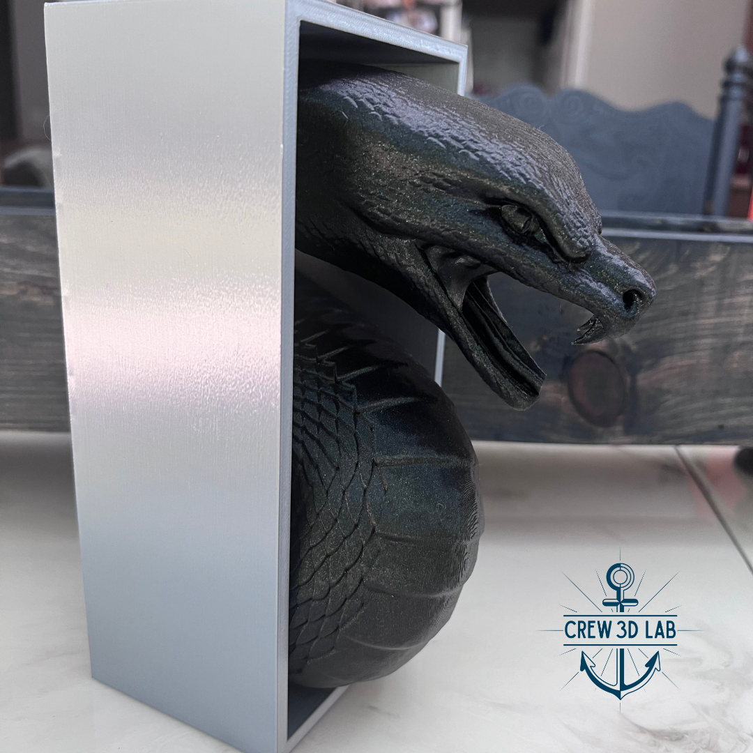 Unveil the secrets of ambition and power with our Serpent’s Ambition Book Nook from Crew 3D Lab. Standing at 7.8" tall, this striking book nook is inspired by the cunning and resourcefulness of serpentine legends. Whether you’re drawn to the tales of a certain cunning house or ancient stories of serpents, this book nook adds an air of mystery and authority to your bookshelf.