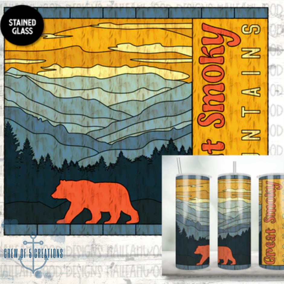 Stained Glass Great Smoky Mountain Skyline Sublimation Tumbler