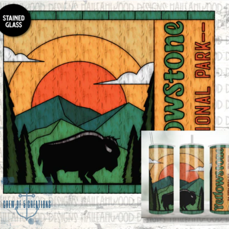 Stained Glass Yellowstone National Park Skyline Sublimation Tumbler